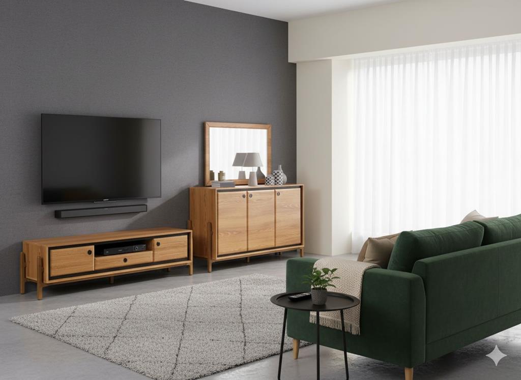 - ست آینه کنسول و میز تی وی به راحتی با سایر مبلمان چوبی هماهنگ میشود.