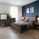 - رنگ و متریال: استفاده از رنگ چوبی گرم و پارچه طوسی هماهنگ با دکوراسیونهای مدرن و کلاسیک.