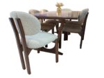 - نمونه دیگر شامل 4 صندلی زرشکی و 4 صندلی کرم روشن است که ترکیب رنگها را متنوع و جذاب میکند.