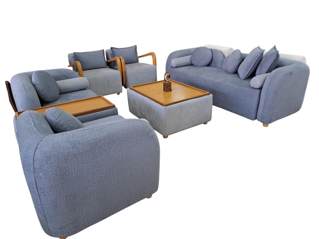 - چهار عدد مبل تک نفره که دو عدد از تک نفرهها دارای دستههای چوبی زیبا و باکیفیت هستند،